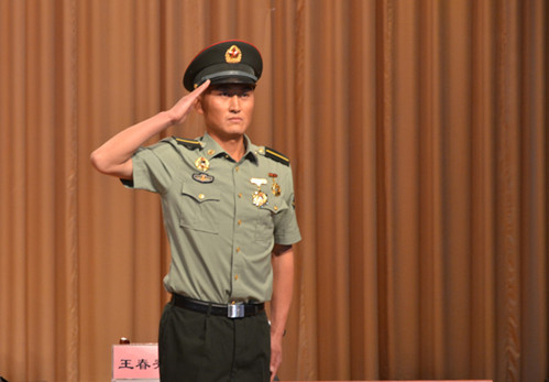 9月19日下午,C区大学生活动中心内掌声雷动,不时发出阵阵尖叫声。我校2012级体育学院孙海强站在舞台中央,身着整齐的军装,行着标准的军礼,向新生们展示军人的风采,分享着参加阅兵式的难忘历程。他是“9·3”阅兵式战士中的一员,也是宁夏大学唯一一位参与阅兵的战士。他作为军人的坚毅和非凡的气宇感染了每个人,他的军人故事也触动了所有人。