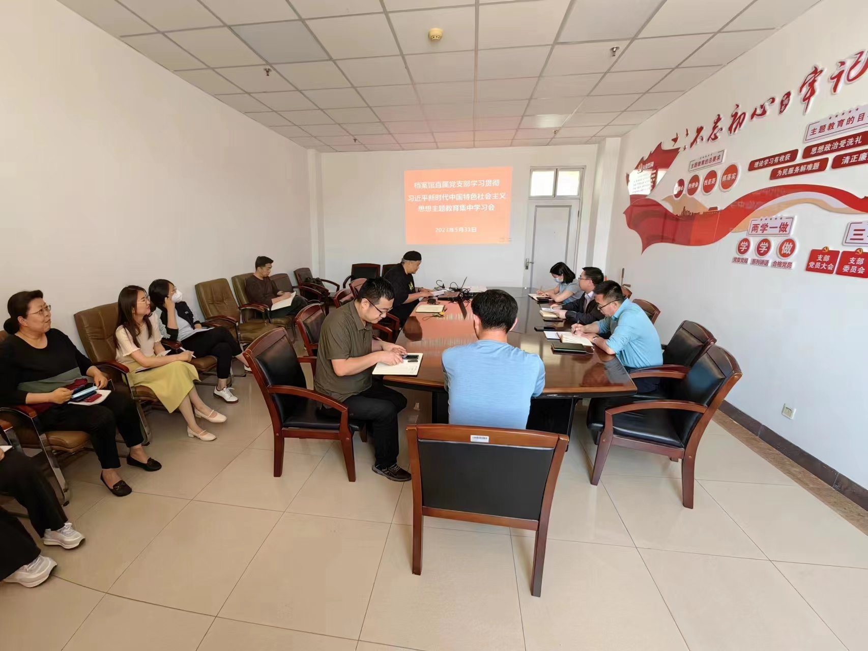 5月31日下午,档案馆直属党支部召开学习贯彻习近平新时代中国特色社会主义思想主题教育集中学习会,组织全体党员集体学习习近平总书记重要文章《新时代中国共产党的历史使命》,会议由支部书记尹军利主持,全体党员参加。