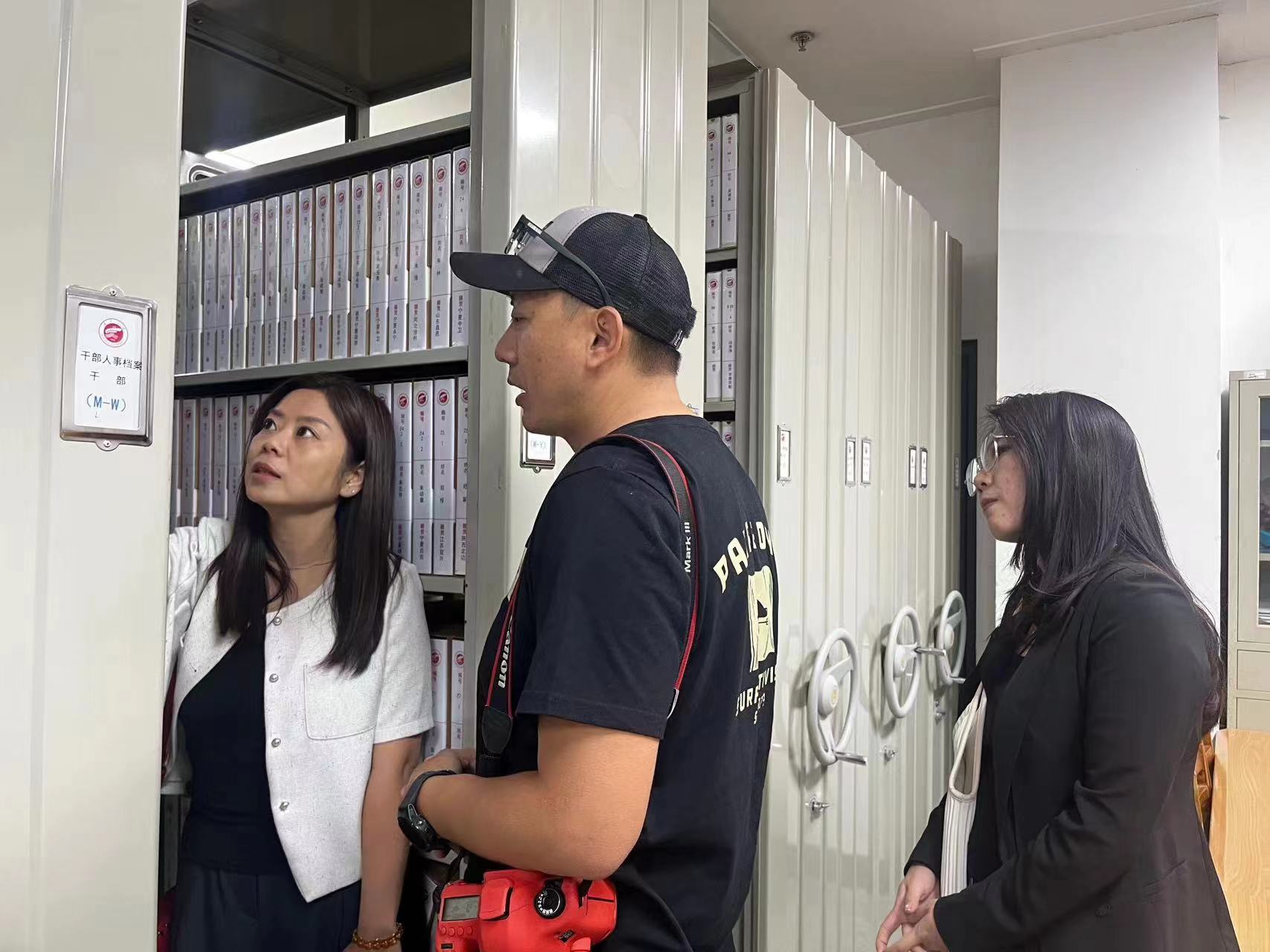 林俊英一行实地察看了档案库房、办公室等地方,随后召开党建工作座谈交流会。座谈会上,双方党支部书记分别介绍了支部的基本情况、党建工作开展情况及特色做法、档案工作情况,并希望以此次党建共建为契机,以党支部“结对共建”为载体,积极推动双方党建与业务工作深度融合,进一步激发党员干部队伍的活力,以全方位、系统化的互动,实现优势互补、资源共享、共建共荣发展新局面。