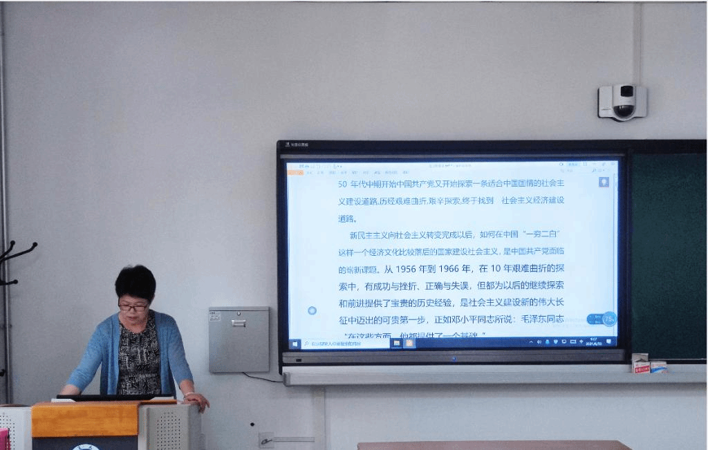 褚文娜和赵芳红在讲解中重点回顾了中国共产党人在探索中前进、党和人民事业在曲折中发展的过程,这一时期完成了从新民主主义到社会主义的伟大转变,建立起社会主义基本制度,推进社会主义建设,为当代中国发展奠定了根本政治前提和制度基础,使中华民族实现了从东亚病夫到站起来的伟大飞跃。