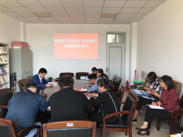 2019年9月18日上午,档案馆于德勤楼311会议室举行“不忘初心、牢记使命”主题教育动员会。会议由张惠副馆长主持。