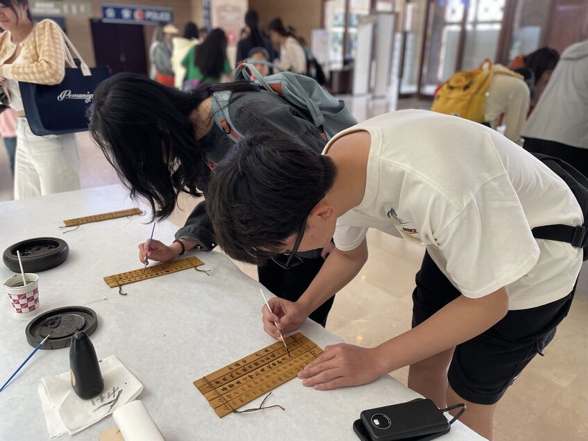 参观结束后,学生讲解员们一同参与的岩画拓片、杯垫制作、居延汉简描摹等实践活动成为了此次活动的点睛之处,不仅丰富了此次活动的学习内容,培养了学生讲解员们的动手协作能力,同时还大大提升了大家的团队合作意识。