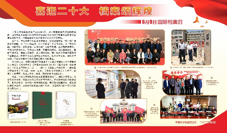 6月9日,是第十五个“国际档案日”。为了进一步增强学校师生的档案意识,营造迎接党的二十大胜利召开的良好氛围,宁夏大学档案馆以图文形式开展“喜迎二十大·档案颂辉煌”国际档案日宣传活动。