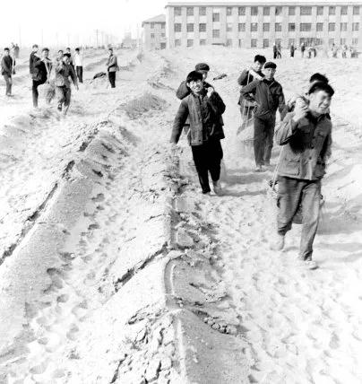 展出照片多以群像为主,凸显了“宁大人”的协作精神和集体力量。从1958年的“三院初创”到1962宁夏大学成立,一组“师生建设校园”的老照片,生动地还原了当年师生们和泥脱坯、肩背锹挖、平移沙丘的艰苦办学场景,老一代“宁大人”用智慧和汗水,在贺兰山下贫瘠荒凉的沙滩上,夯筑起宁夏高等教育坚实的塔基,令人感动和振奋。