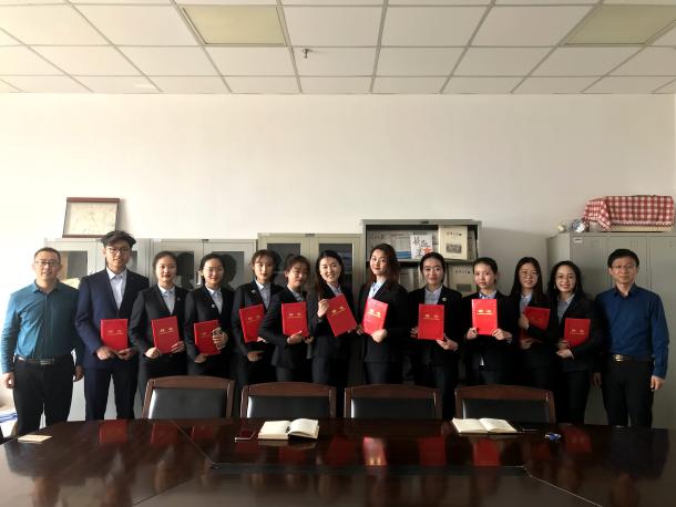 杜维民宣读了《关于聘任2019年度校史馆讲解员的通知》,刘知非等11位同学受聘为2019年度校史馆讲解员。随后,与会馆领导为讲解员颁发了聘书。