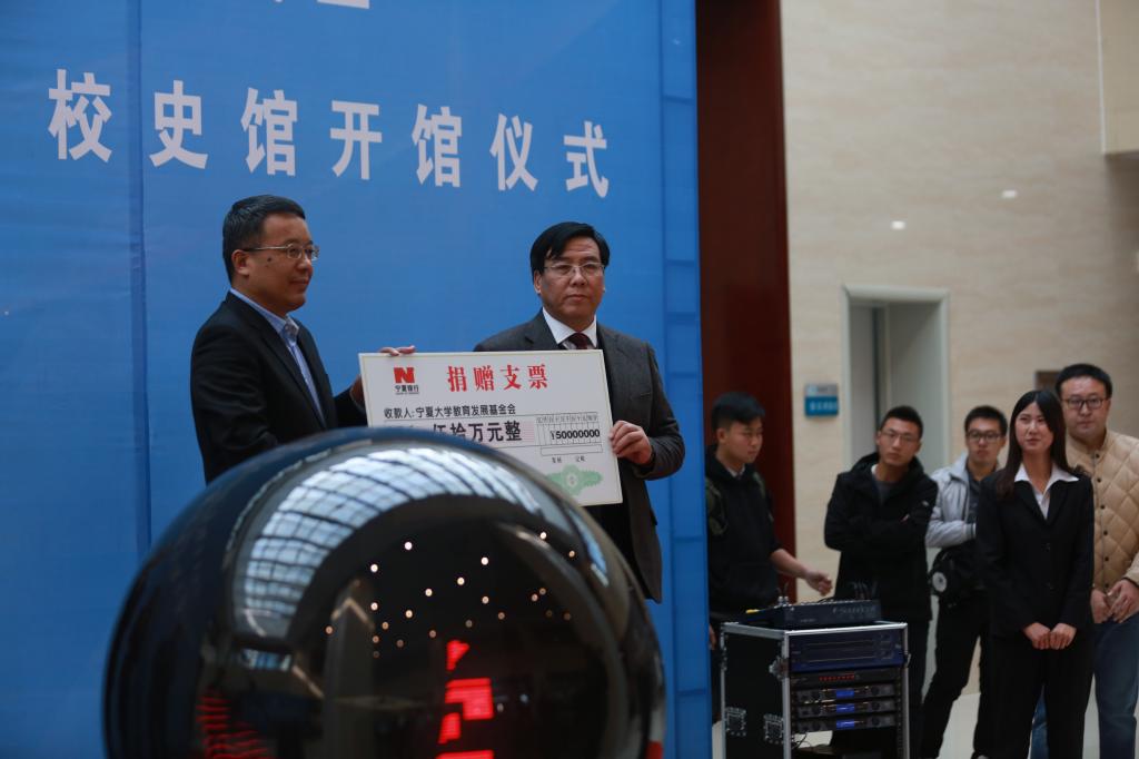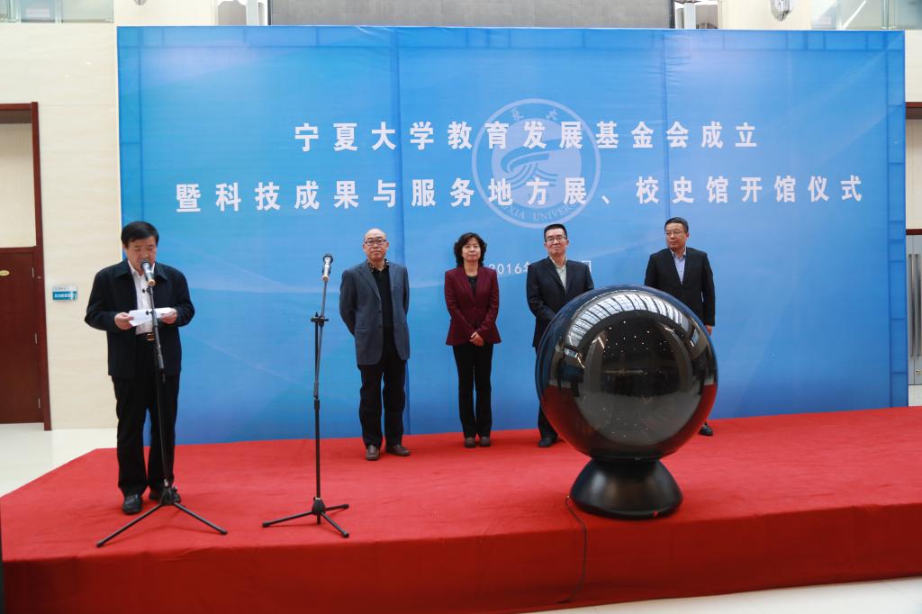 仪式上,何建国校长宣布宁夏大学教育发展基金会成立,科技成果与服务地方开展,校史馆开馆。