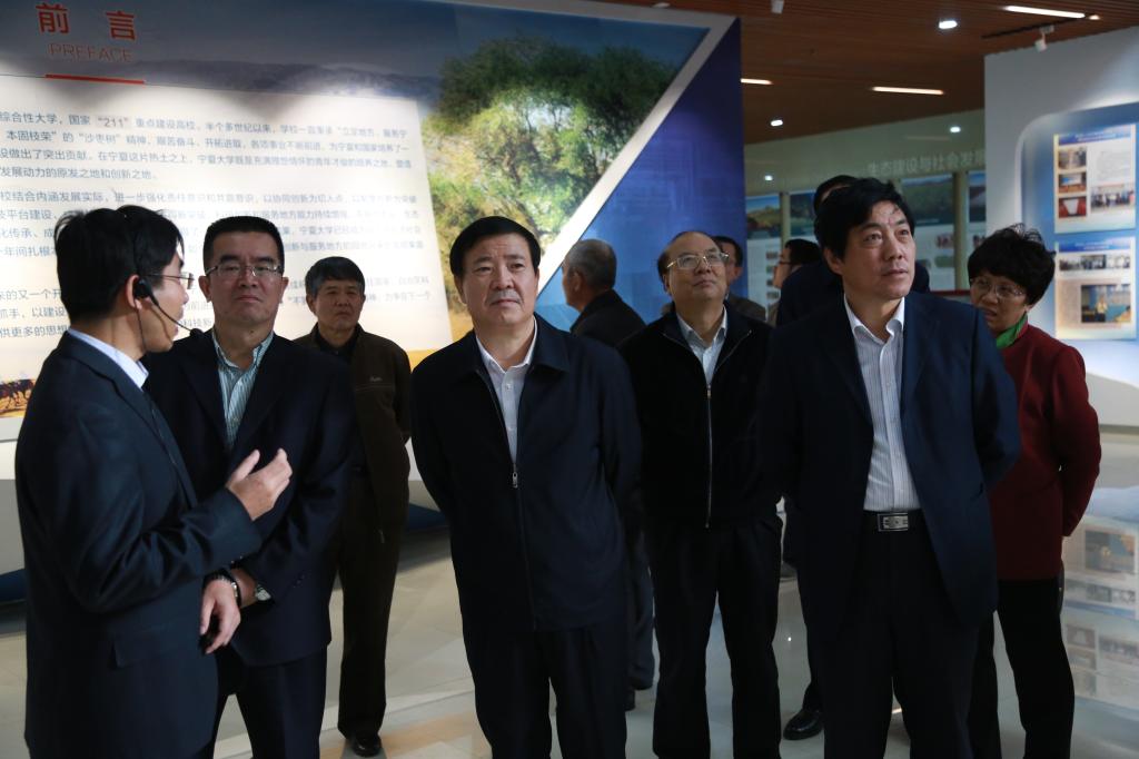 金能明书记作了重要讲话,他说,宁夏大学经过58年的建设发展,在人才培养、科学研究、社会服务、文化传承方面取得辉煌成绩,为服务高等教育事业发展,服务地方经济做出了突出贡献。校史馆和十年科技成果展占地约1000平方米,通过文字、实物、图片、多媒体、沙盘等多种方式充分展示了学校的各个方面,让观众感受到宁夏大学58年的峥嵘岁月和58年来学校科学研究取得的丰硕成果,校史馆和十年科技成果展资料翔实、图文并茂、凝结着各级领导的关怀和爱护,凝结着各界朋友的关心和支持,凝结着学校历届领导和师生员工的辛勤付出和贡献!校史馆是我校58年建设发展的编研,既有学校发展历史的凝练,展示着学校办学特色与风貌,也有对学校优良传统与校园文化的综合展示,校史馆是我校58年办学历史的浓缩,再现了一代代宁大人自强不息、艰苦奋斗的精神,展示了当今学校改革发展的主题,凸显了我校在不同历史时期为国家建设事业、为人才培养、为中国高等教育事业所作出的贡献和主要成果。校史馆的建设对于发扬学校优良传统,传承学校深厚文化积淀,创新校园文化建设具有重要的意义,有利于对师生开展爱岗、爱校教育、人文教育,激发师生的自豪感、荣誉感、使命感,有利于增强校友对母校的认同感和凝聚力,有利于吸引更多人关注学校的建设、发展,为学校西部一流的建设创造更多有利的条件。 校史馆必将进一步激励全校师生承前启后、继往开来、凝心聚力,和谐奋进,大力发扬 "不到长城非好汉"的宁夏精神,在创建西部一流大学新的长征路上,不断创造新的辉煌。发掘并保护好这些宝贵资料是我们建设西部一流大学、建设先进校园文化的必然要求,是对广大师生进行校情教育的重要载体。校史馆开馆后,我们将充分利用其传承历史的功能,使之成为宣传学校、凝聚校友、活跃文化的中心,成为开拓进取、启迪未来、传承文化的平台,成为宁大人奋发有为、加快发展,实现建设西部一流大学奋斗目标的新内涵。我相信在各级领导的关心、支持下、在全校师生员工的共同努力下,宁夏大学的事业一定会发扬光大,宁夏大学的明天一定更加辉煌。