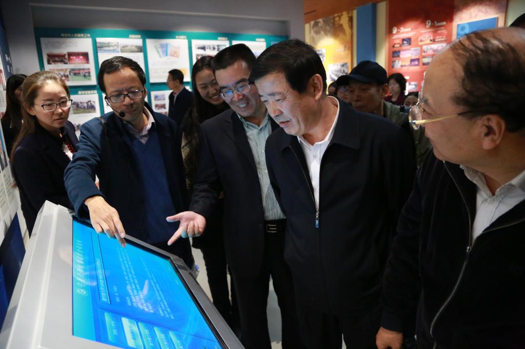 在档案馆雷慧的陪同解说下,金能明书记、何建国校长和校友基金会的领导一行饶有兴致地查看了展陈设计与展出实物,在校友名录与电子留言拍照系统驻足查看了毕业生信息。校领导对校史馆建设给予充分肯定,并就部分细节提出了指导性意见。