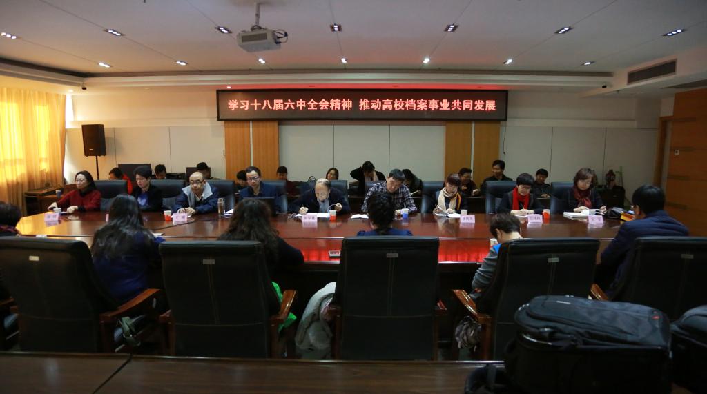为了深入学习贯彻党的十八届六中全会精神,12月9日下午,宁夏医科大学档案馆党支部书记吴克谦、馆长林俊英、北方民族大学档案馆馆长王刚、宁夏师范学院图书馆副馆长张桂玲一行20余人来我校开展支部共建活动,我校副校长田军仓、档案馆直属党支部书记雷慧、副馆长褚文娜、刘晔及档案馆全体党员参加了学习交流活动。活动由档案馆雷慧主持。