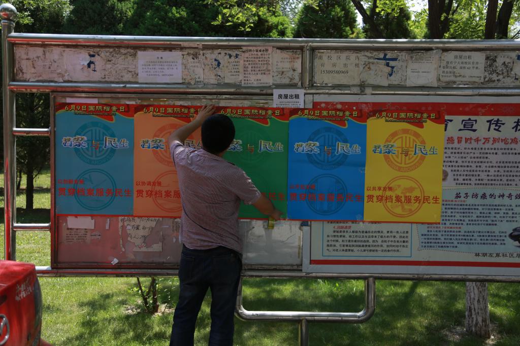 6月6日,为配合“国际档案日”宣传活动,宁夏大学档案馆组织专人分别在贺兰山校区、文萃校区、怀远校区、金凤校区充分利用宣传栏、大门口等醒目的位置,张贴“民生档案 服务民生”的宣传挂图,图文并茂地面向全校师生宣传档案利用的惠民实例。