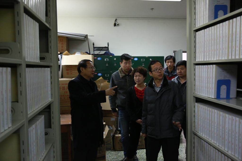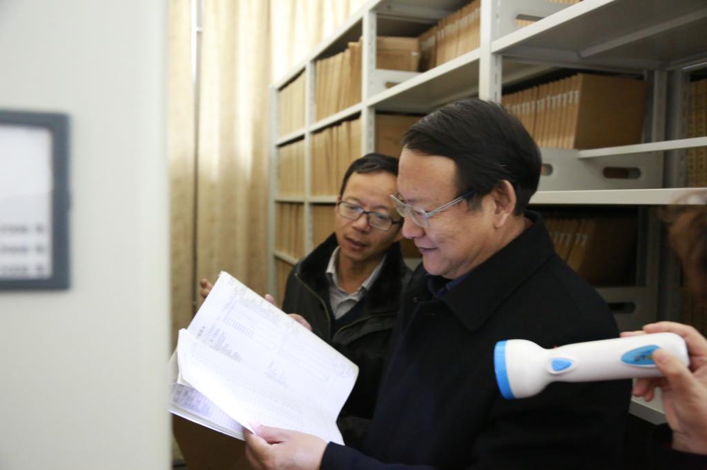 调研中,马应虎副校长先后深入到档案库房和各业务科室,仔细查看了档案保管和办公情况,认真听取雷慧馆长、褚文娜副馆长介绍档案分类及分布情况。在库房,马校长详细询问了各类档案的收集情况,对教师业务档案提出了工作要求,翻阅了一些重要的学籍档案资料。在人事档案室,马校长详细了解了学校干部人事档案整理、归档的工作进展,叮嘱一定要认真做好档案的保密和防火防盗工作。