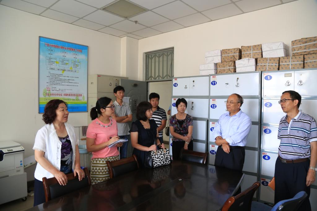 8月25日,自治区档案局副局长张玉琴一行4人档案检查组到宁夏大学检查工作,检查组在十一楼会议室首先听取了档案馆馆长雷慧汇报学校2015年档案接收情况、《宁夏大学材料归档范围保管期限》规章制度的制定情况、声像档案的收集整理以及数字化档案馆的建设情况、档案编研工作情况,存在的问题和下一步的工作打算。会议由田军仓副校长主持。