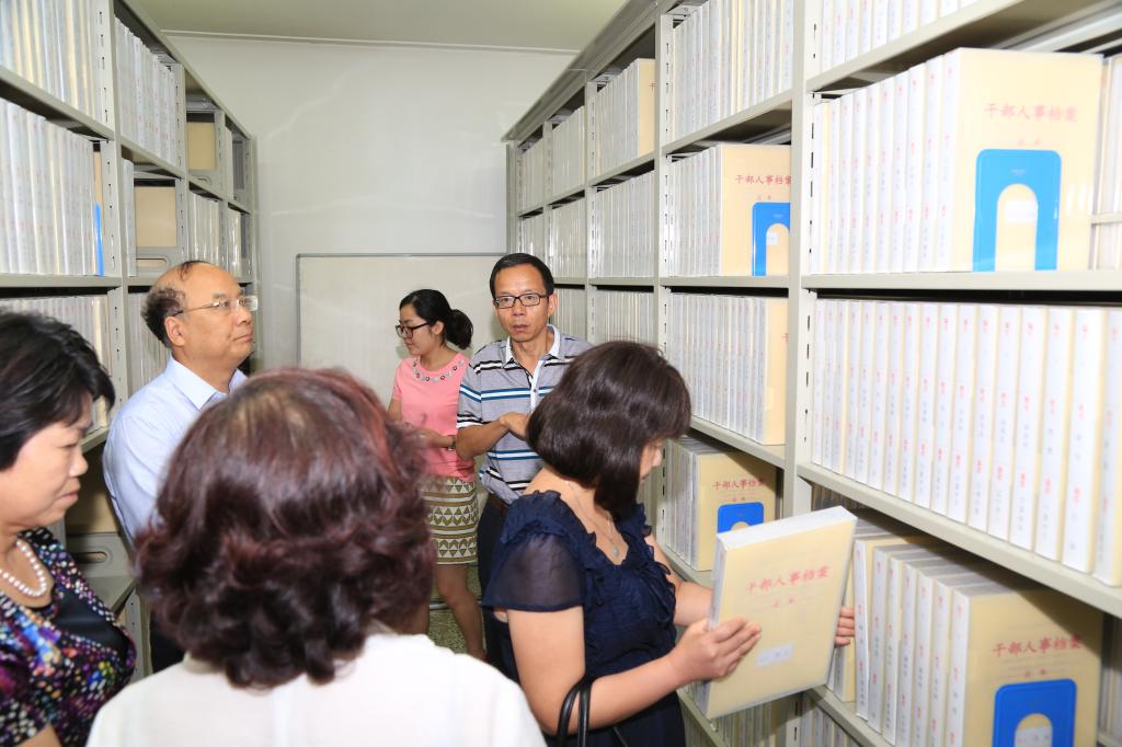 随后,在田军仓副校长的陪同下检查组到档案馆办公室、档案库房实地查看各类档案的归档和整理情况。在库房调取了文书、学籍、基建、科研档案认真查阅,查看了实物档案和干部人事档案,在业务室详细询问了“南大之星”档案管理软件的功能,随机调取一份毕业生学籍档案了解检索全文信息功能。检查人员边看边交流,对我们的工作提出许多合理的建议。