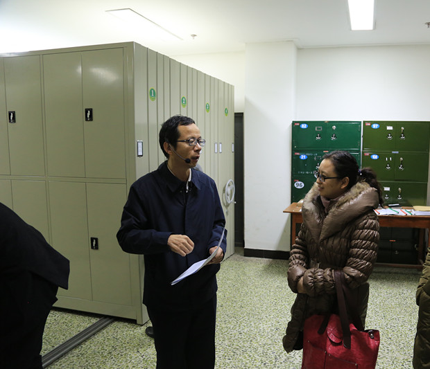 12月20日上午,我区十余所高校的八十多名领导、专家在自治区教育厅学生处杨文刚处长的带领下来我校档案馆参观考察。我校学生处处长王宏伟陪同教育厅领导参观。专家组一行首先参观了我校学生处档案室,听取了档案室董惠琴老师对在校学生档案管理的具体办法的工作介绍。随后,专家组一行参观了学校档案馆,听取了档案馆馆长雷慧对往届毕业生档案管理的情况介绍。来宾现场观摩了档案提取工作流程和毕业生档案管理办法的具体措施。