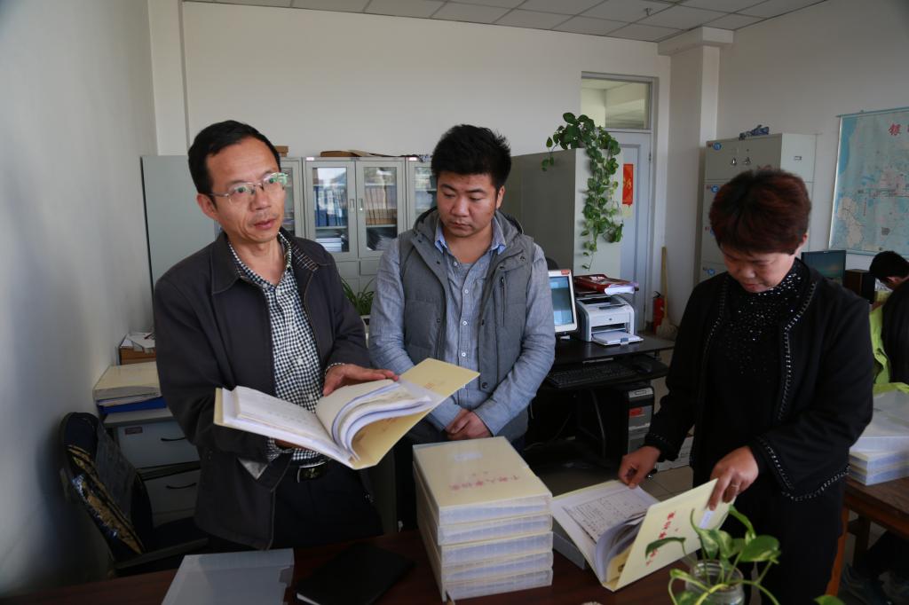 馆领导正在检查档案整理情况
