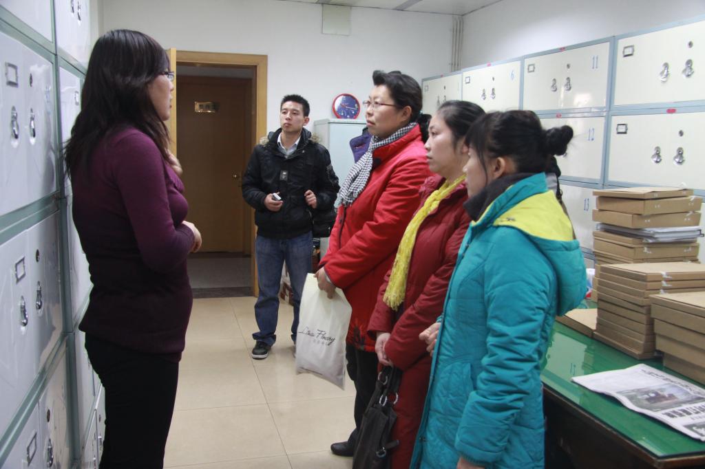 随后,宁夏建设职业技术学院的老师分别到档案馆技术室、利用室、人事档案室和档案库房参观,技术室的同志向大家演示了利用计算机检索查档的过程,介绍了“南大之星”档案管理软件的主要技术性能。大家饶有兴致地在库房参观档案实体,雷慧馆长热情地向大家介绍学校档案的分类、排架、库房管理情况,并一一解答了同志们提出的各种问题。参观结束时,档案馆给所有客人赠送了一本由宁夏大学档案馆编写的《档案理论与实践》业务指导书。