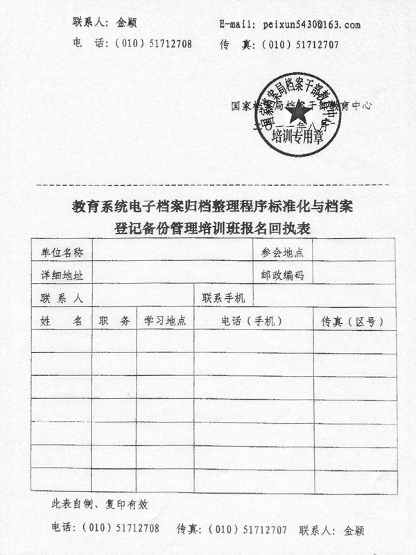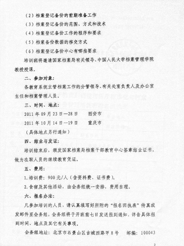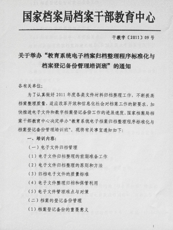 转发关于举办“教育系统电子档案归档整理程序标准化与档案登记备份管理培训班”的通知
